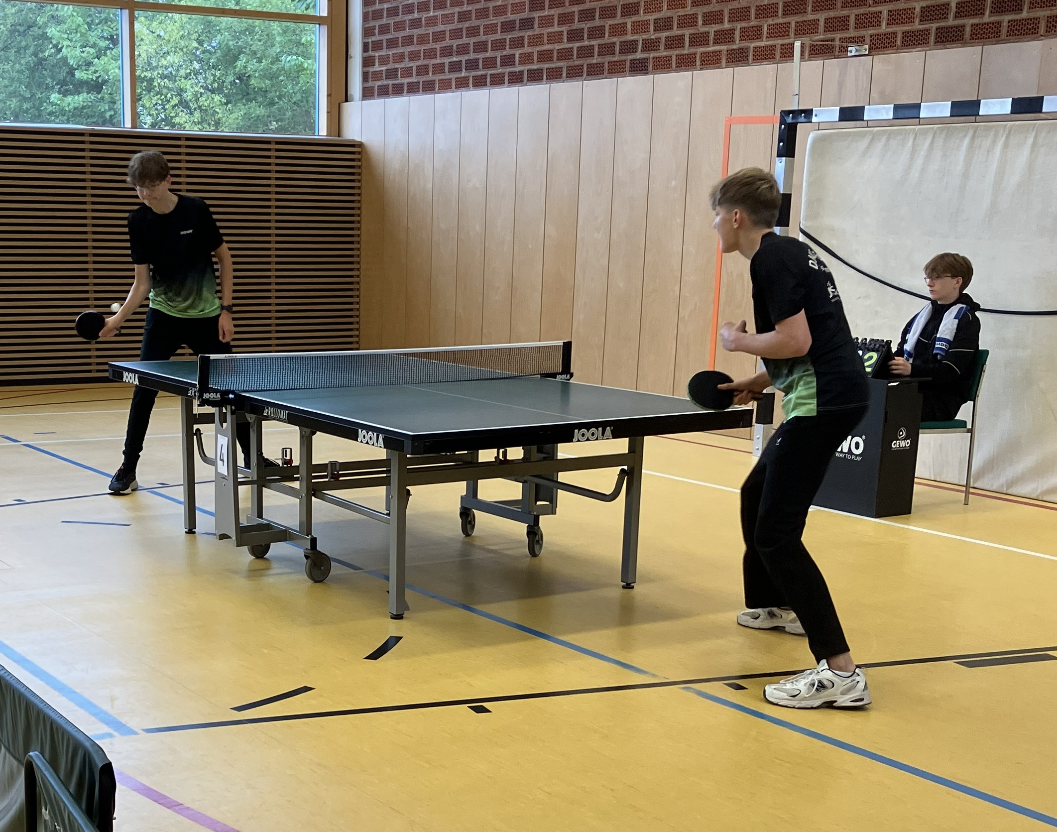 Meistens spielen Tom Hohenschläger, Andreas Bürger und Simon Neugebauer. Das Doppel bestreiten gerne der Linkshänder Tom und der Rechtshänder Simon, wobei beide Jungs eher Angriffsspieler sind.